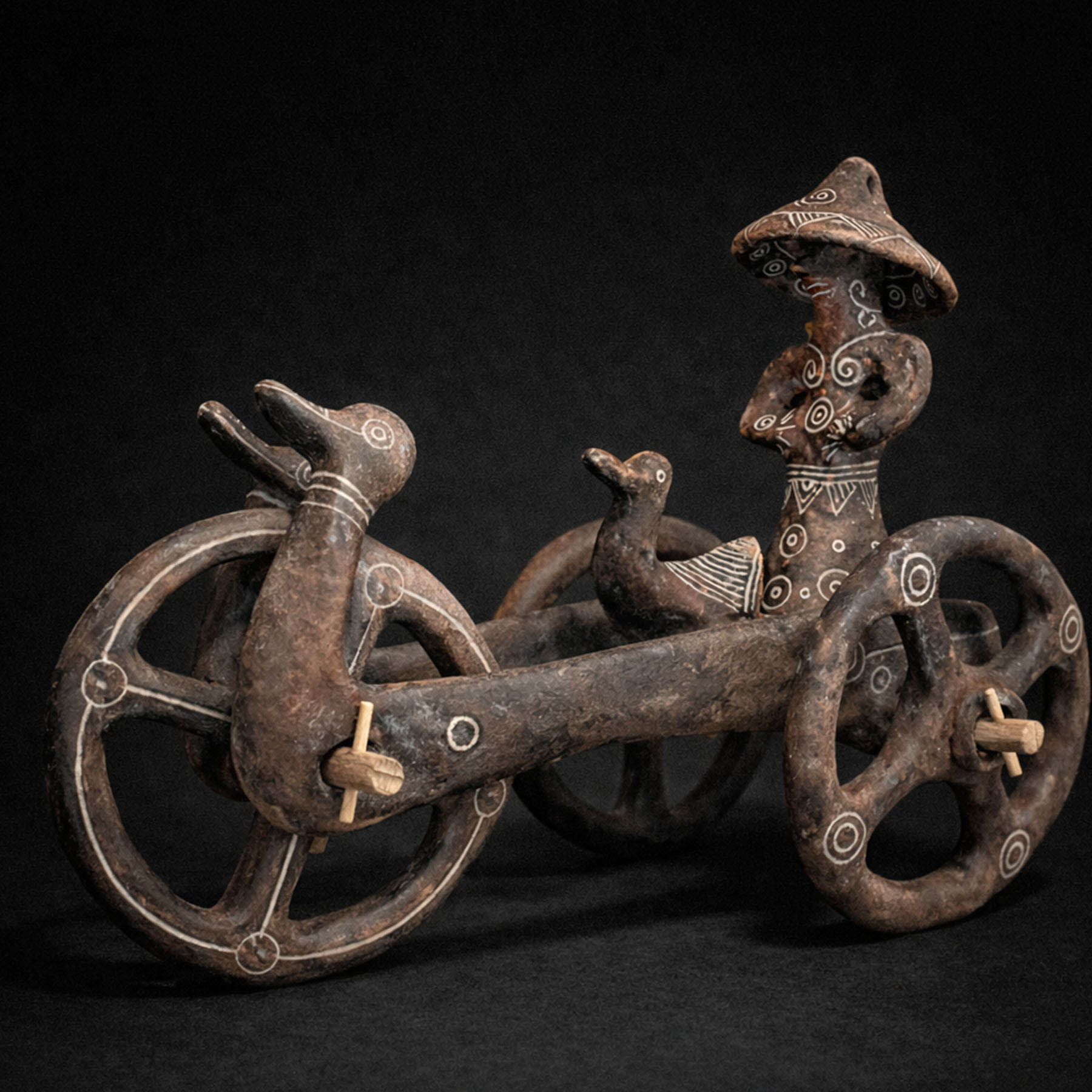 Kolica od keramike sa tri točka, i figurom na njima, bronzano doba, pronađeni u selu Dupljaja, južni Banat, blizu Deliblatske peščare. Svi delovi autentični, točkovi mogu da se pokreću. Replika, autor Lena Živković, atelje Milene Nikolić, 25 × 14 × 19 cm. Rok isporuke 20 dana.