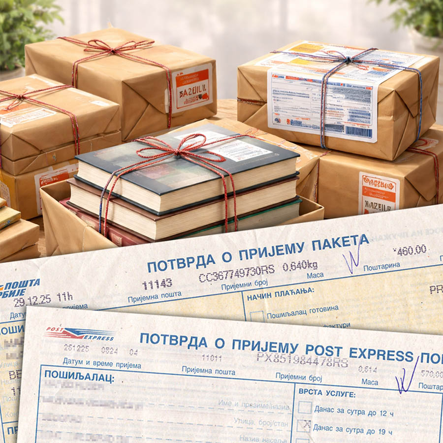 Тежина књига није увек иста, па се и поштарина може разликовати у зависности од конкретне пошиљке. Наш сајт приликом поручивања аутоматски обрачунава основну поштарину (без услуге преноса новца), док се трошак поузећа додаје накнадно, у складу са важећим ценовником поште. Наведени износи односе се на стање према ценовнику од 1. јануара 2026. године.